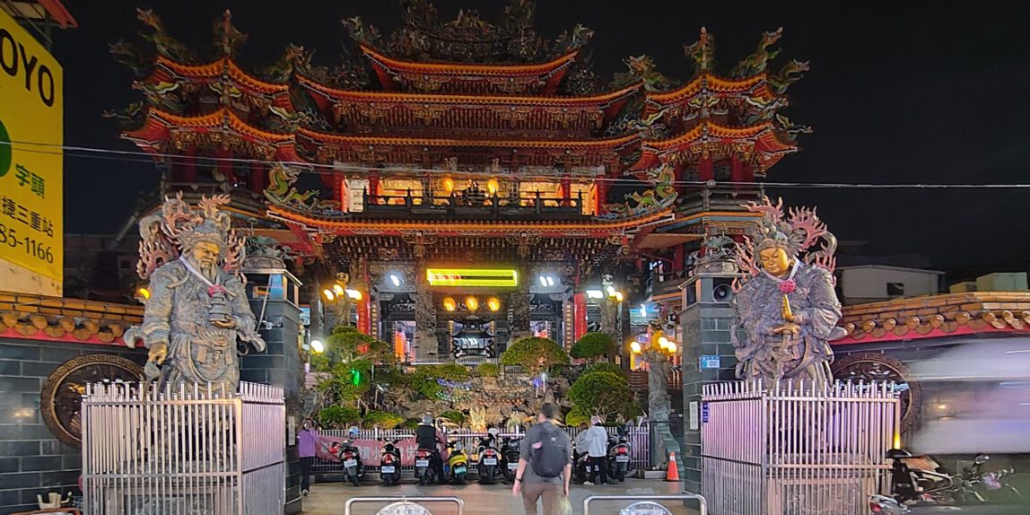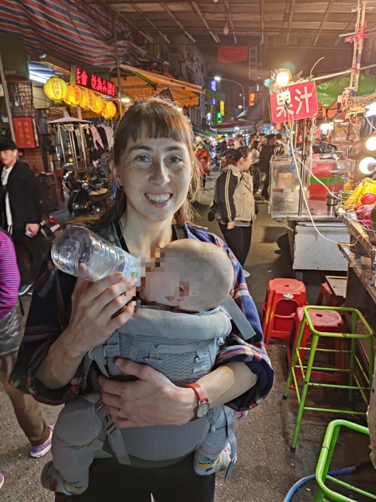 Auf der Fahrt in die Stadt konnten wir die Urwälder Taiwans erahnen. Bergiges dicht bewachsenes Land und dazwischen eine Hochbahn, auf der wir unterwegs waren. Diese Kombination kannten wir schon aus Japan und waren deshalb nicht überrascht, als wir Golf-Abschlagsplätze sehen konnten. Außerdem lernten wir auf der Fahrt das erste Mal die Baby-Vernarrtheit der Taiwanesen kennen. Eine sehr nette Frau spielte mit Max und unterhielt ihn, weil er viel zu aufgeregt war, um schlafen zu können. Das ging natürlich unabhängig von der Sprache.