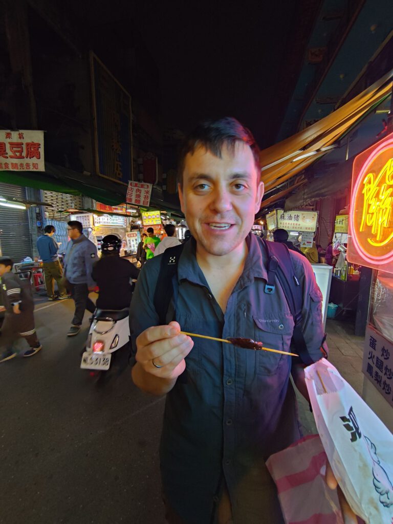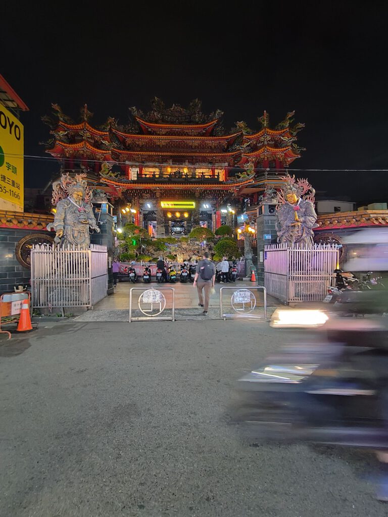 Nach einem ausgiebigen späten Mittagsschlaf gingen wir fürs Abendessen zu einem der Nachtmärkte der Stadt. Die Nachtmärkte bestehen aus vielen kleinen mobilen Straßenlokalen und bieten alles an. Essen, Lebensmittel, Kleidung und bestimmt noch mehr. Wir waren auf einem kleinen Nachtmarkt in unserem Stadtteil, der an und um einen Tempel ist.