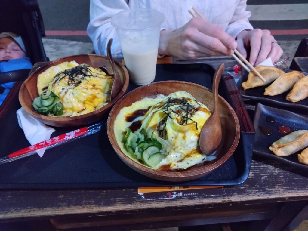 Japanisches Reisgericht mit Omelett drüber