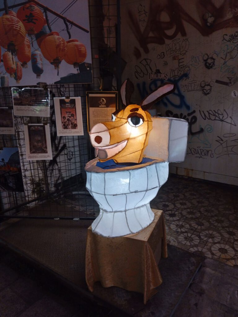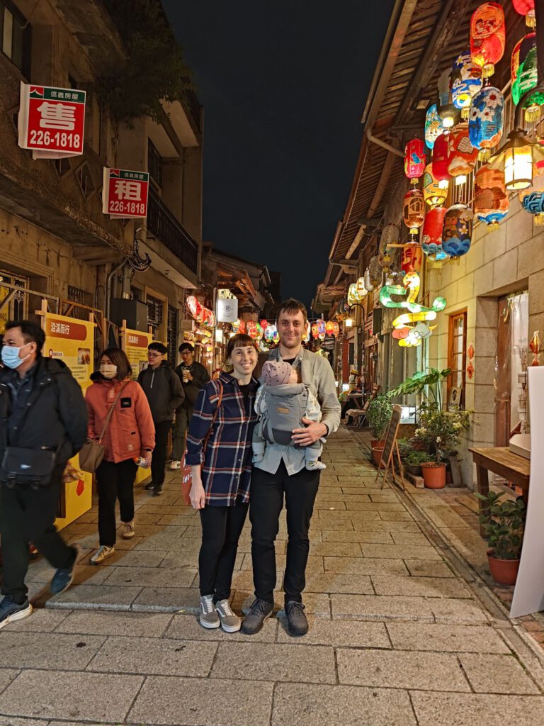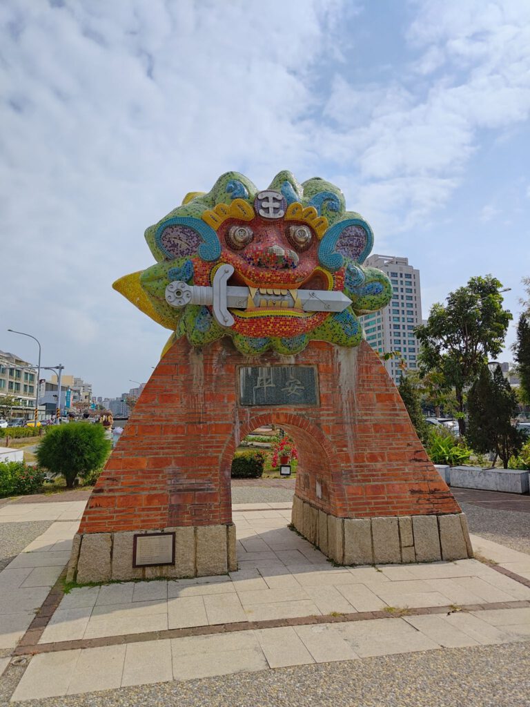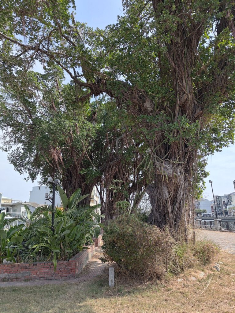 Nach einem interessanten Frühstück, das wir zumindest probiert haben, entschieden wir uns das wir am nächsten Tag ohne auskommen und uns lieber etwas anderes kaufen würden. Tagsüber wollten wir uns die Stadt anschauen und nahmen dafür zur Freude der Mitfahrenden den Bus (Max sorgt überall für gute Laune). Wir steuerten zuerst einen Teeladen an, um Bubble Tea und Milchtee zu kaufen. Mit den Bechern in der Hand liefen wir am Kanal entlang zum Fort Zeelandija. Die Banyan-Bäume mit ihren vielen Luftwurzeln sind beeindruckend groß. Kurz vor dem Fort erschreckten wir durch einen lauten Knall einer kleinen Maschine am Straßenrand. Das waren Krabbenchips! Mit dem Knall kamen die großen Chips wie kleine Frisbees rausgeschossen und landeten an einem Metallgitter. Ich hab mir vorher noch nie Gedanken gemacht, wie die Chips gemacht werden. Unser nächstes Erlebnis hatten wir im Besucherzentrum des Stadtteils, als die Damen des Zentrums Max sahen und ganz freudig Fotos von uns vor dem Gebäude machen wollten, weil sie Max so süß fanden. Außerdem bekam er einen Schlüsselanhänger geschenkt. Die Taiwanesen sind echt verrückt was Babys angeht! Max macht es ihnen aber auch einfach, weil er so ziemlich jeden anlächelt und auf Reaktionen wartet. Schon bei der Fahrt in den Bus hat er eine ganze Gruppe Teenies unterhalten bzw sich unterhalten lassen.