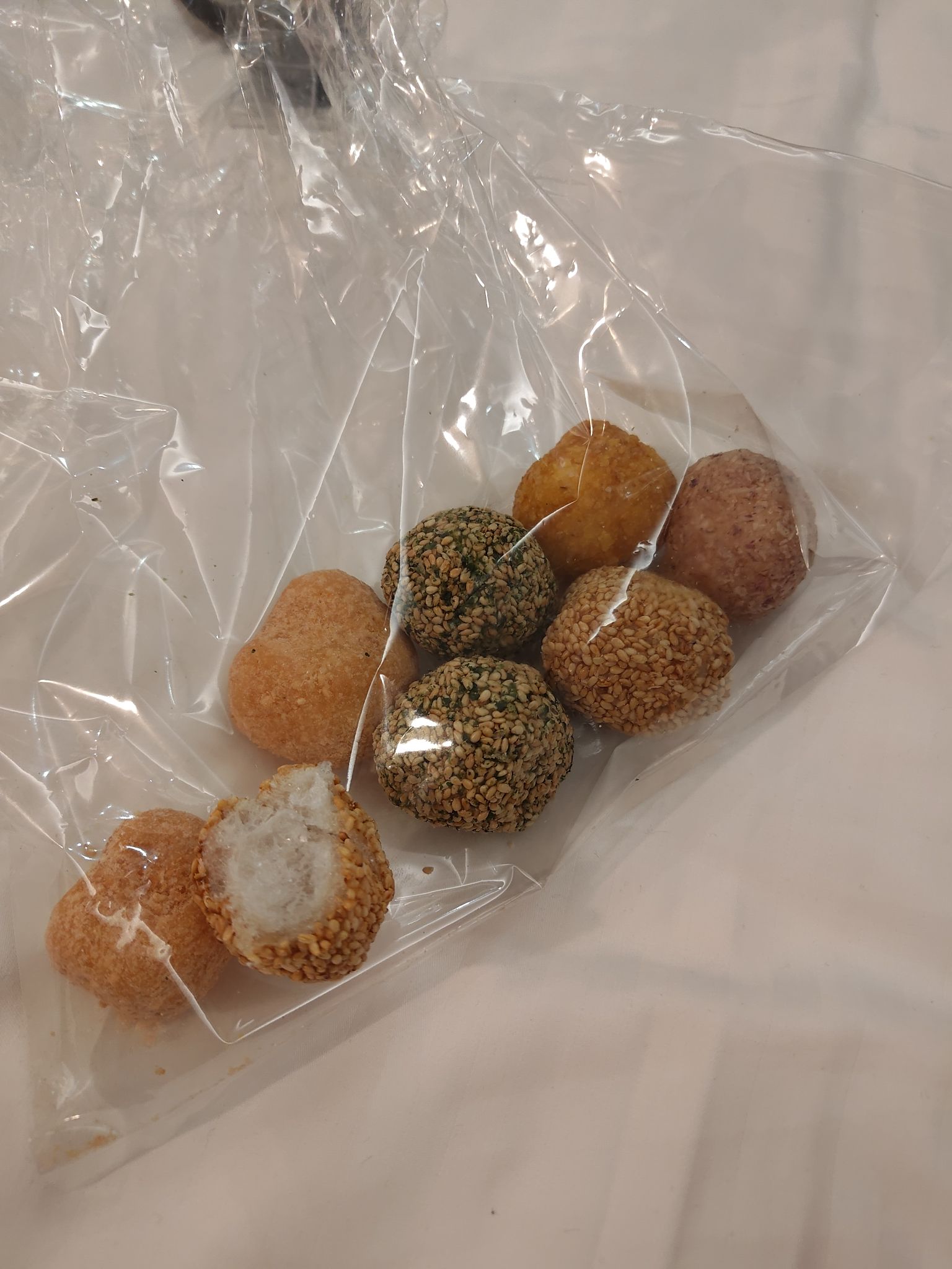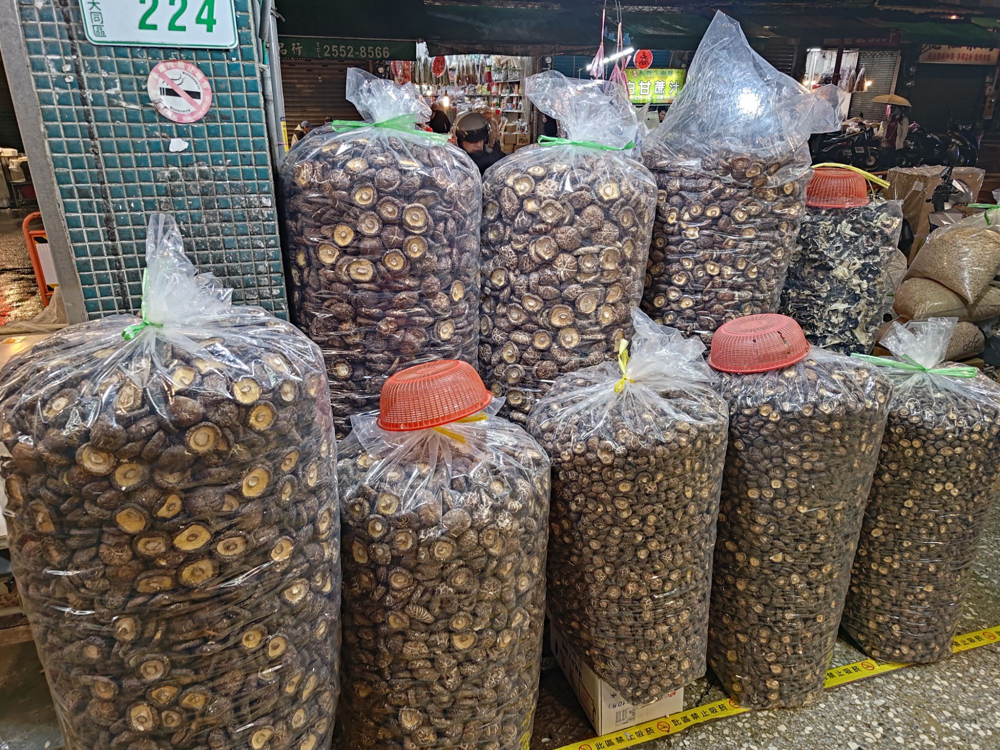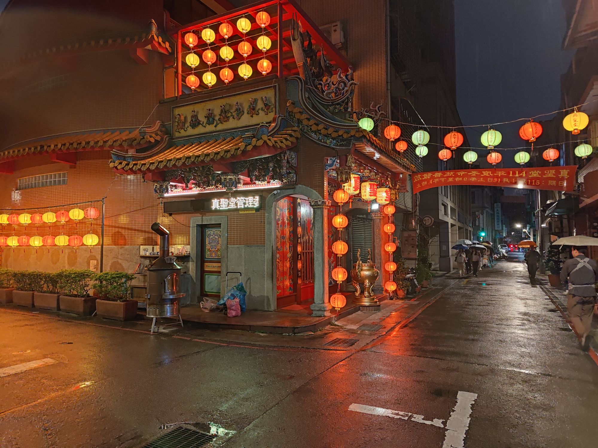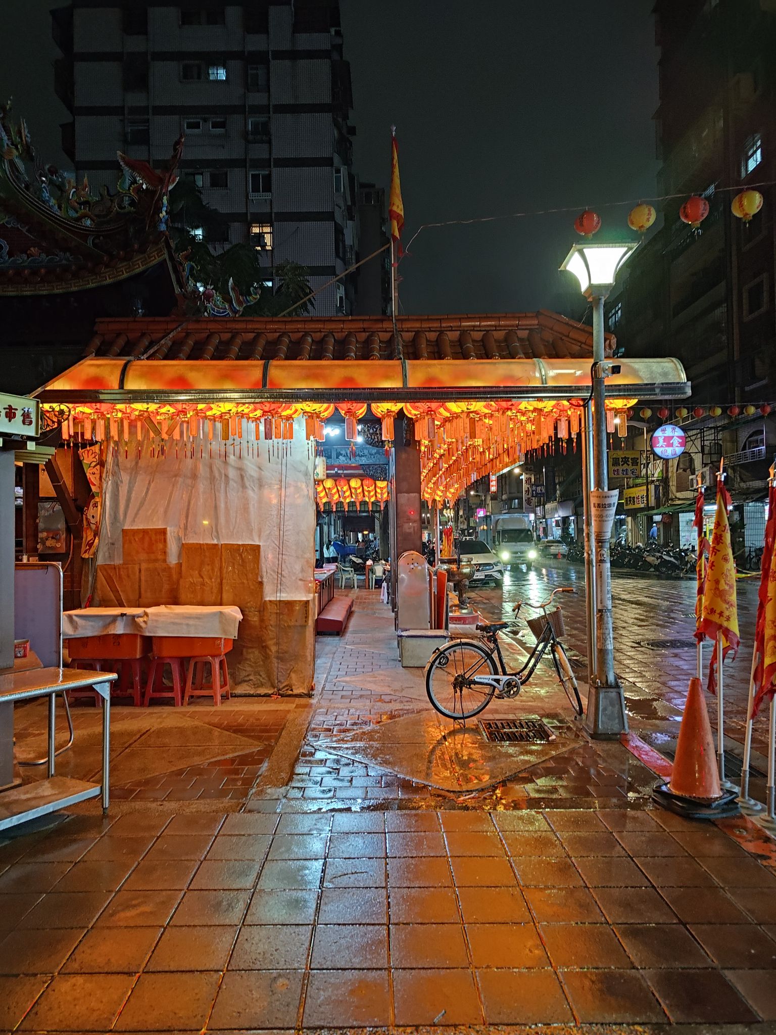 Vom Hotel machten wir einen Spaziergang zur nahegelegenen alten Straße, in der es viele alte Häuser im westlichen Stil und einen Markt gibt. Von den Häusern konnte man leider nicht so viel sehen. Es regnete und das Meer an Regenschirmen verdeckte die Sicht und außerdem waren die Stände ziemlich gut beleuchtet. Es gab alles zu kaufen, von Süßigkeiten über Trockenfrüchte, später auch Kleidung und Kochzubehör. Viele Stände luden zum probieren ein und da wir noch nicht gegessen hatten, nutzte ich das auch ein wenig aus. Dort Gemüsechips, da was Süßes,… so konnte es doch weitergehen. Naja, vielleicht doch nicht, schließlich wird man davon auch nicht satt. Wir bummelten also weiter zum nächsten großen Nachtmarkt, um was richtiges holen. Praktischerweise war der überdacht, wenn auch richtig voll und wir somit mit durchs Gedränge mussten. Wir probierten einen frischen Guavensaft, Takoyaki mit Wasabi und einen großen Topf voller frittierter Pilze. Zum satt werden holten wir uns allerdings noch eine Portion kalte Nudeln mit Sesamsoße.